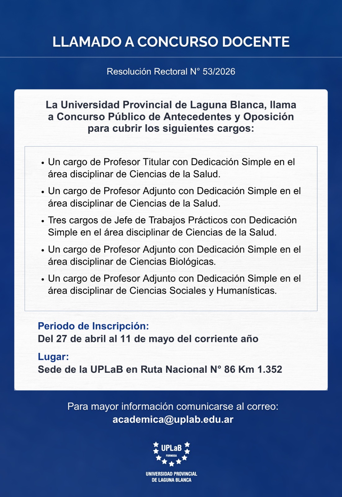 La Universidad Provincial de Laguna Blanca (UPLaB) celebra un nuevo logro académico con la graduación de 10 estudiantes de la carrera de Enfermería Universitaria, quienes culminaron su formación y se incorporan como nuevos profesionales comprometidos con el cuidado de la salud y el bienestar de la comunidad.