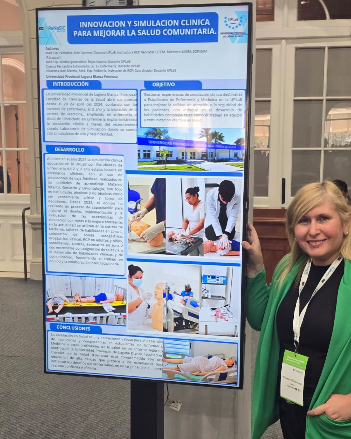 Los días 2 y 3 de octubre, docentes de las carreras de Medicina y Enfermería de nuestra universidad participaron en el Congreso Internacional de Simulación Clínica CIN RENASIC 2025, realizado en Santiago del Estero, donde presentaron el póster titulado: “Innovación y simulación clínica para mejorar la salud comunitaria”.
