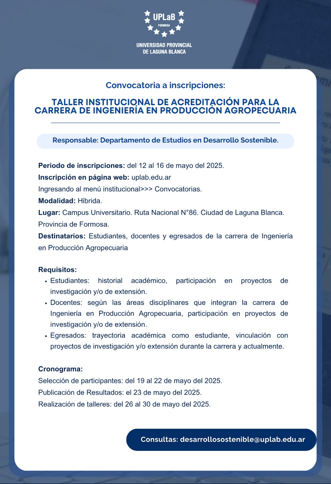 Taller Institucional de Acreditación para la carrera de Ingeniería en Producción Agropecuaria